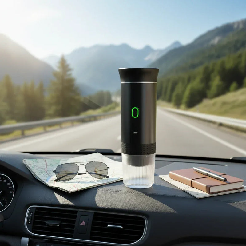 Sleek, compact, and built for the journey. Your perfect coffee companion for car, camp, or home.