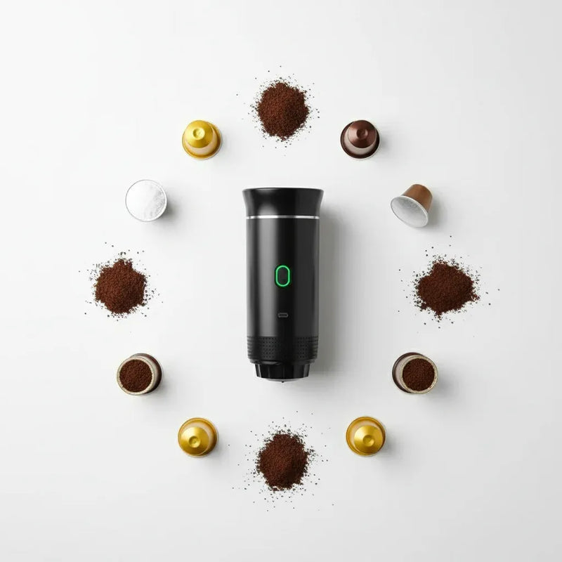 Unleash your inner barista! Whether you're craving the convenience of NS or DG capsules, or the rich aroma of your favorite ground coffee, our Portable Espresso Maker adapts to your taste.